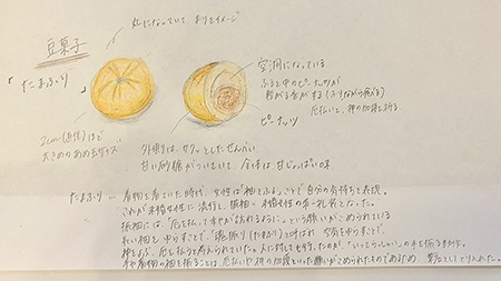 菓銘には、「遊んで、食べて、甘味を感じて欲しい」という意味を込めました。