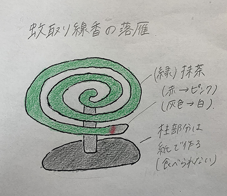 見る機会の減ってしまった日本ならではの夏の風物詩「蚊取り線香」を和菓子にしました。