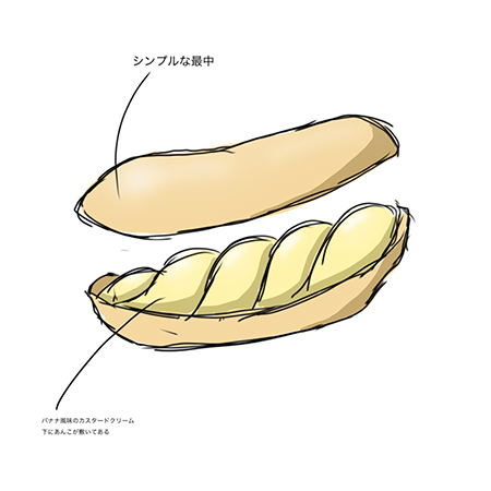 未熟な青色の中から成熟した黄色、その中から実の部分としてバナナの形を模した最中が出てきます。果実も人も最初は未熟ですが、徐々に色づいて熟れて、一人前の風格が現れるというような、生き物の成長や成熟を感じられる和菓子にしました。また、「風格」はバナナの花言葉でもあります。