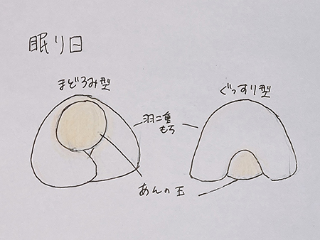 布団に包まって眠る太陽をイメージした、あんと羽二重もちのお菓子です。ぐっすり型、まどろみ型が夜空箱の中に入っています。