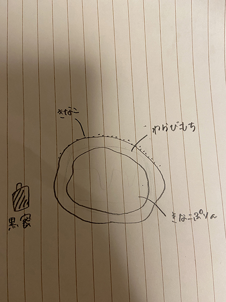 大福の福という漢字にかけて福わらびと名づけ、食べたら幸せな気持ちになれる。