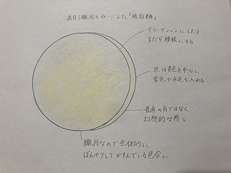 月をイメージしたレモン味の琥珀糖。春の季語である朧月は、かすみがかったように朧げな月を意味している。パッケージでは、儚く神秘的な雰囲気を出せるように色味を工夫した。このお菓子から明るい春だけではなく、幻想的な雰囲気の春も楽しんで欲しい。